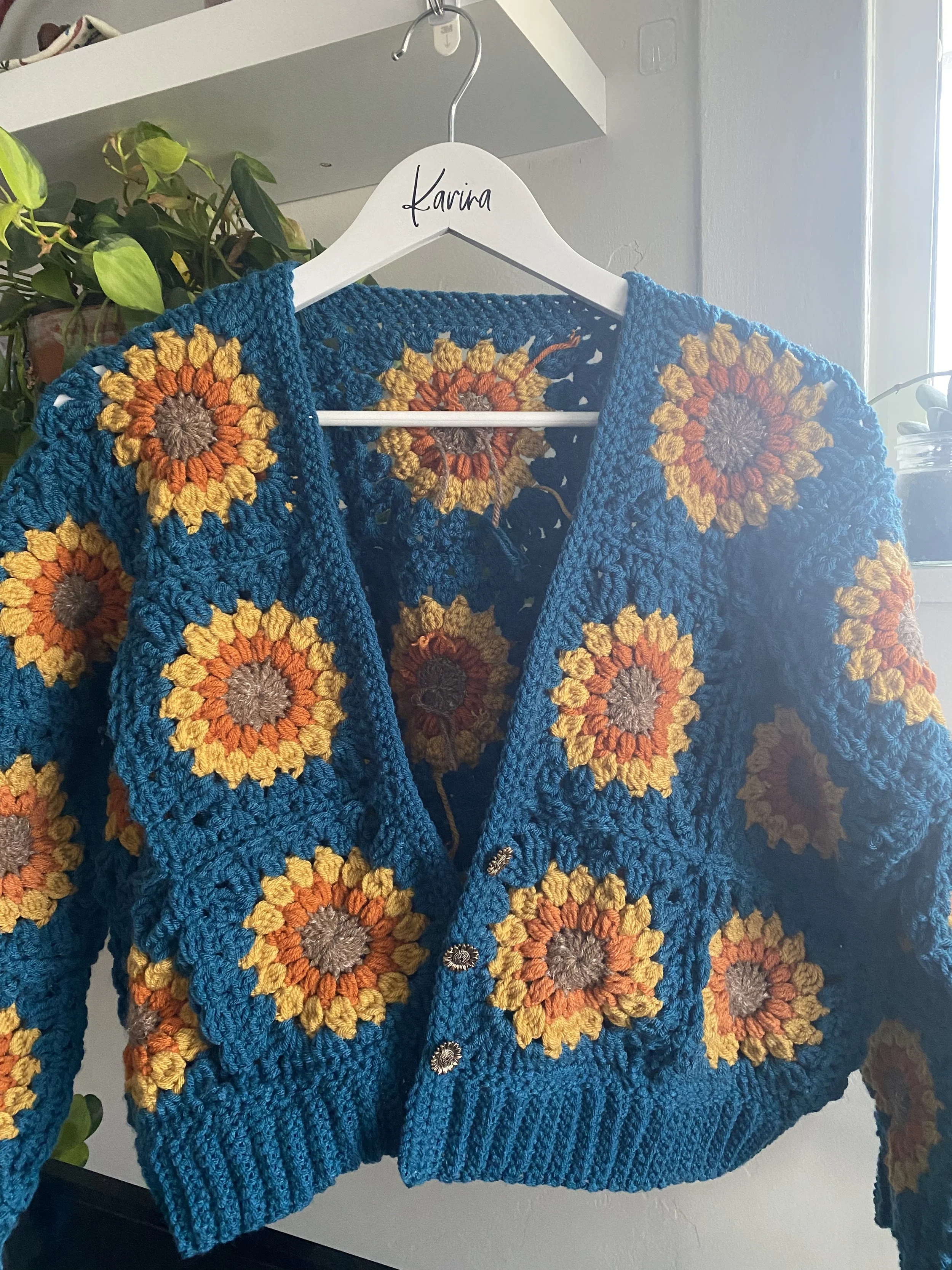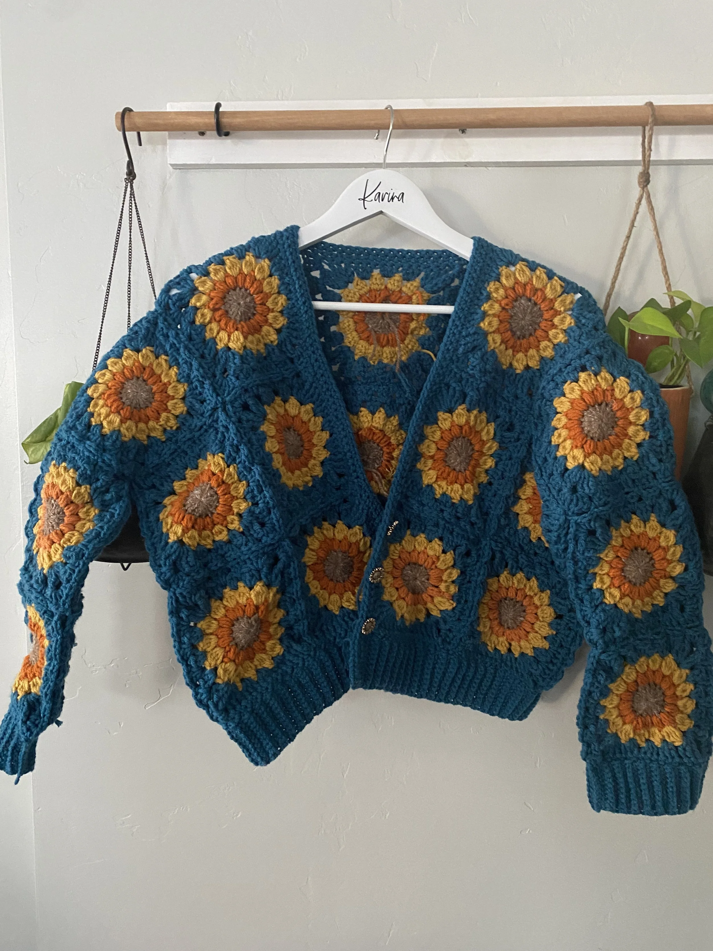 Image 1 of 6 Image 2 of 6 Image 3 of 6 Image 4 of 6 Image 5 of 6 Image 6 of 6 Sunflower Cardigan $200.00 Size: Select Size Small Medium Large X-Large Material: Select Material Low-Pill Acrylic Color: Select Color Teal (shown) Olive (shown) Navy Terracotta Mauve Black Cream Purple Quantity: Add To Cart Added!