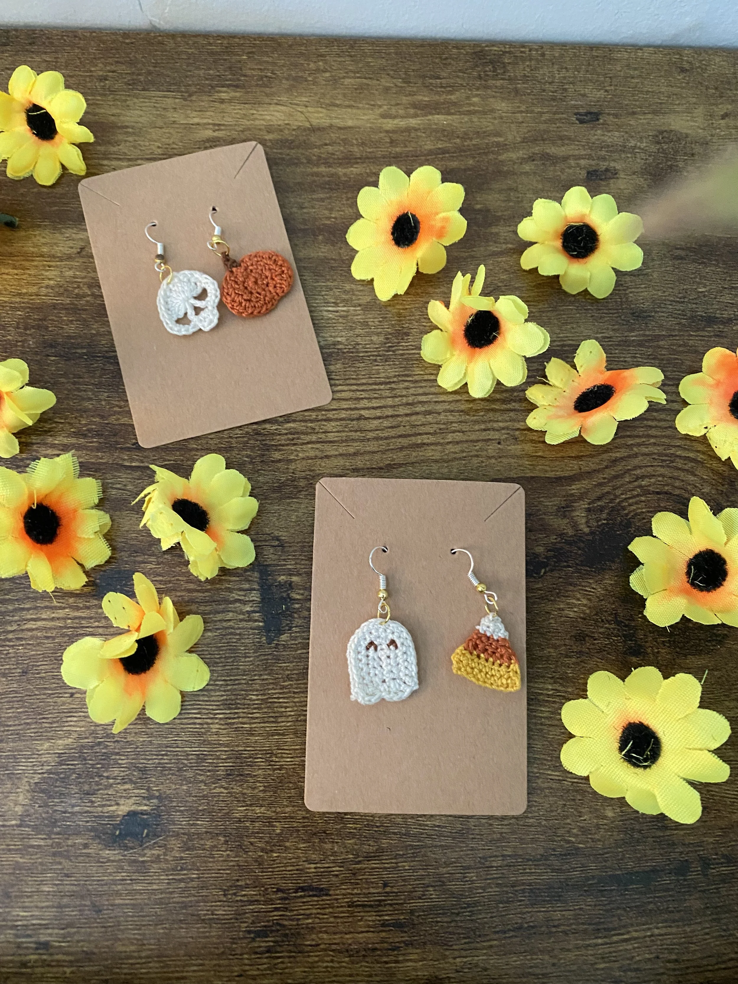 Image 1 of 3 Image 2 of 3 Image 3 of 3 Mix & Match Earrings $17.50 These earrings are made with 100% Egyptian cotton thread. Choose: Skull/Pumpkin Ghost/Candy Corn Pumpkins Skulls Ghosts Candy Corn Quantity: Add To Cart Added! These earrings are made with 100% Egyptian cotton thread.