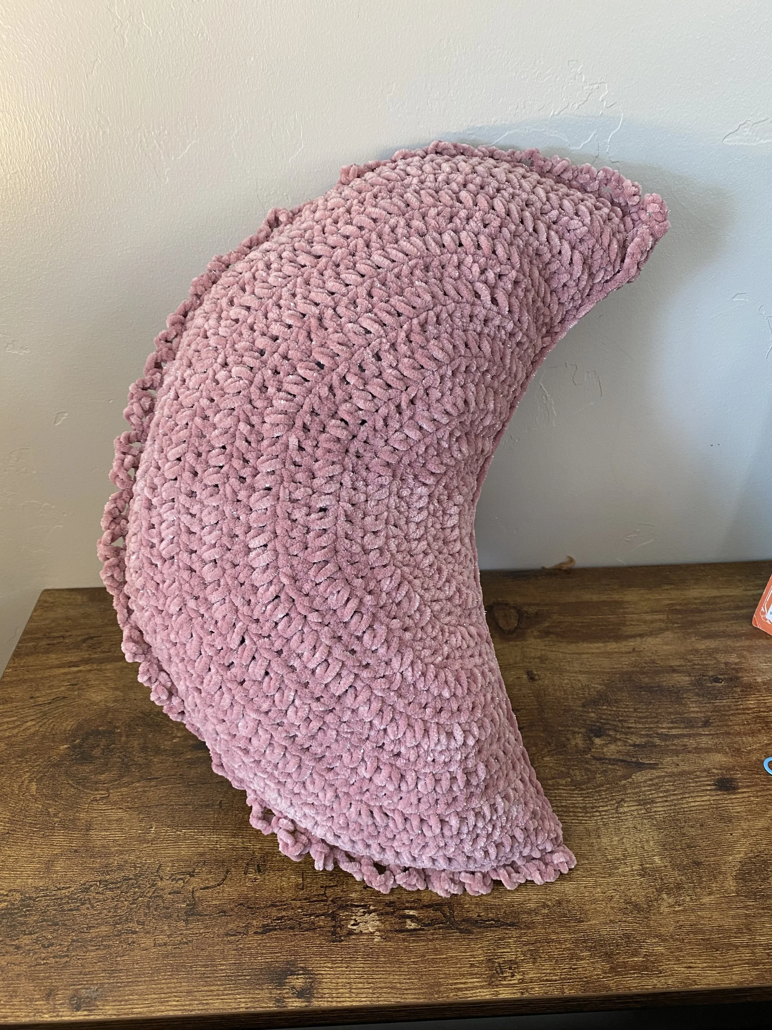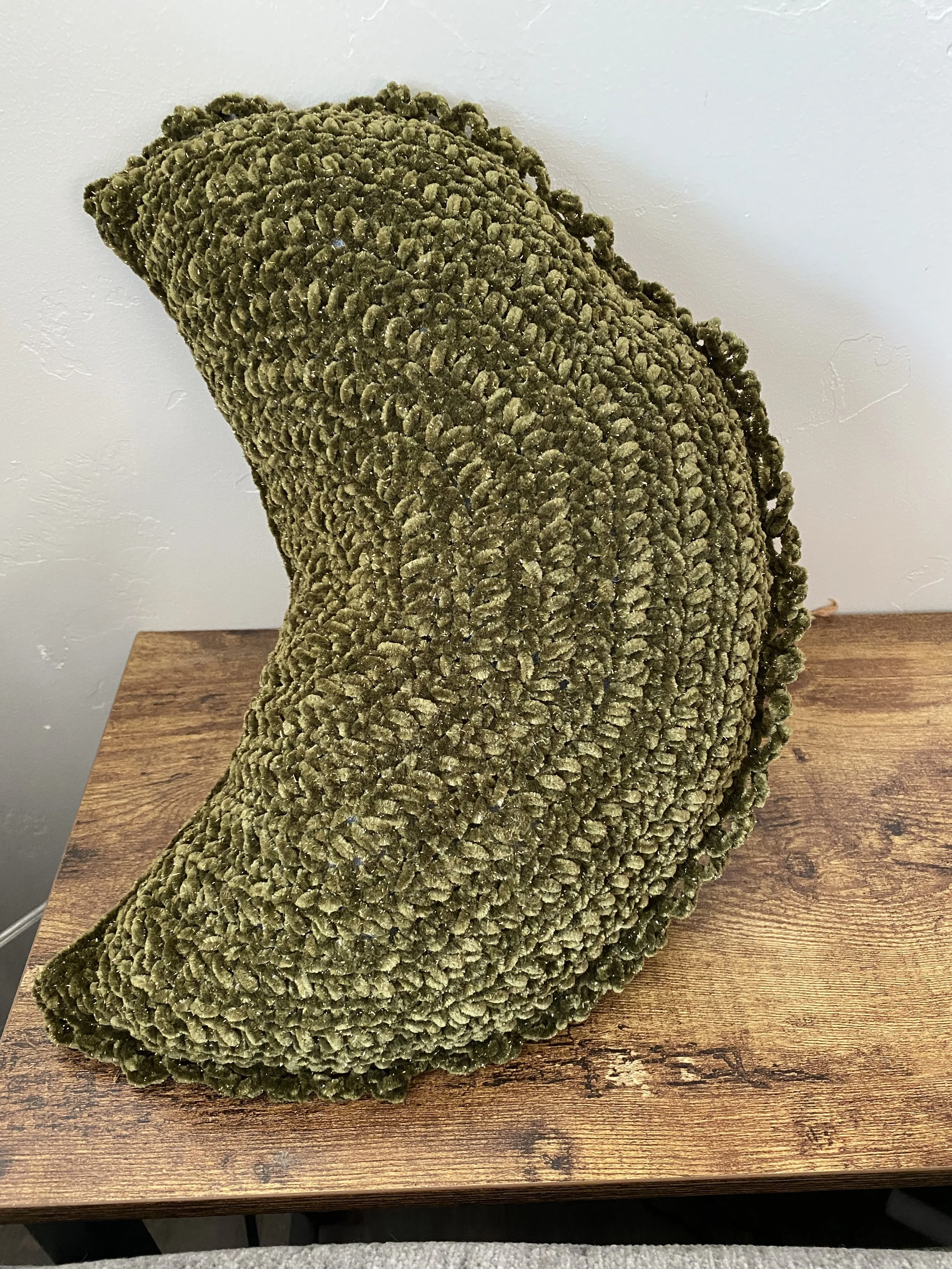 Image 1 of 6 Image 2 of 6 Image 3 of 6 Image 4 of 6 Image 5 of 6 Image 6 of 6 Magic Moon Pillow $30.00 These half moon pillows are inspired by my son for whom we call the moon. Made from velvet yarn. Color: Olive Pink Cream Purple Black Navy Teal Quantity: Add To Cart Added! These half moon pillows are inspired by my son for whom we call the moon. Made from velvet yarn.
